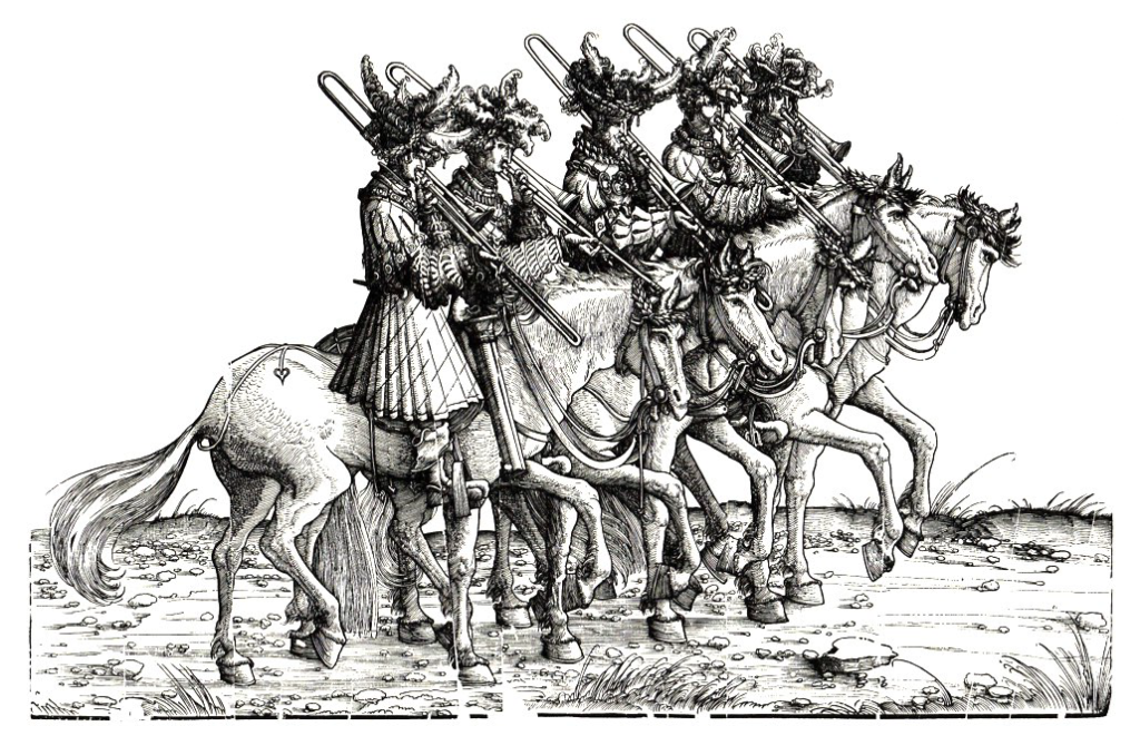 Cyril Bernhard, Bertrand Blessing, Vincent Brard, Arnaud Brétécher, Jean-Charles Legrand (sacqueboutes), issus des plus grandes institutions européennes (Conservatoire National Supérieur de Musique de Paris, Lyon ou encore la Haute École de Musique de Genève), ont tous fini par se retrouver autour de Franck Poitrineau au cours de leurs pérégrinations musicales. Venant d’horizons aussi divers que le violoncelle, la flûte à bec ou encore les percussions et le monde de la danse, l’étude de ce répertoire, et de cet instrument si particulier qu’est la sacqueboute, ne peut que nourrir leur vie professionnelle déjà riche d’expériences en tous genres. Ainsi, on peut les entendre, seuls ou à plusieurs, dans des projets avec des ensembles tels que Pygmalion (Raphaël Pichon), Les Arts Florissants (William Christie), Insula Orchestra (Laurence Equilbey), le Poème Harmonique (Vincent Dumestre), Doulce Mémoire (Denis Raisin-Dadre), le Concert Spirituel (Hervé Niquet), ou encore dans des compositions de musique de films à la renommée internationale (Festival de Cannes).